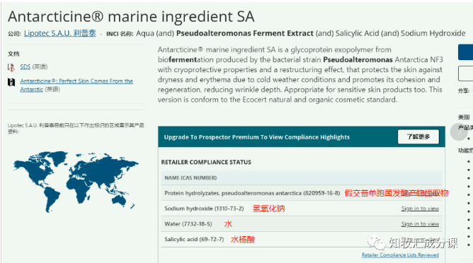 科颜氏面霜里用到的是一组名为:Antarcticine® marine ingredient SA的原料,组成成分是:水、水杨酸、氢氧化钠、假交替单胞菌发酵提取物。